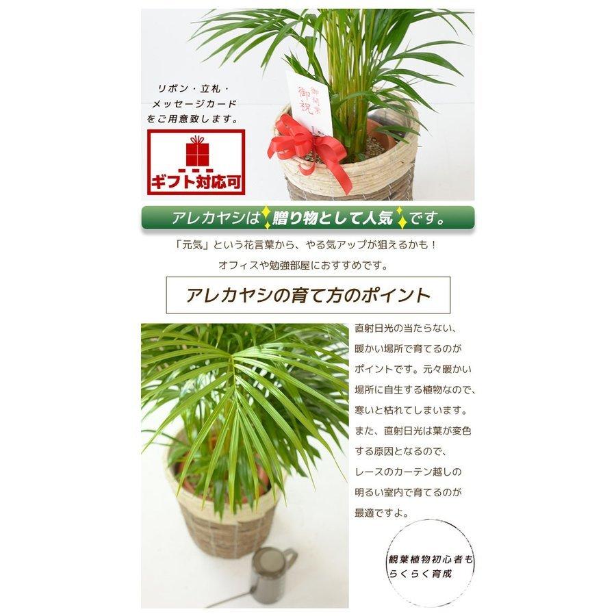 · アレカヤシの特徴 アレカヤシは、羽状に広がる美しい葉が特徴的なヤシ科の一種。 アフリカ大陸沖にあるマダガスカル島を原産とする南国の植物で、本来は8mほどの高さにもなります。 日本ではヤマドリヤシ、コガネタケヤシと呼ばれることもあります。 ヤシ科のなかで、もっとも葉の枚数が多く、パーテーション代わりに利用する店舗もよく見かけます観葉植物 アレカヤシ 10号※バスケット鉢カバー付花言葉カード付・・・アレカヤシは昔からインテリアグリーンとして定番のヤシ類観葉植物です。 和風、洋風、アジアンといろんな場面でマッチするトロピカルな育てやすい観葉植物です。開店祝い、開業祝いのほか個人への贈り物でも3010 · アレカヤシの花言葉 アレカヤシにはポジティブで素敵な花言葉があります。 アレカヤシの花言葉は「元気」と「勝利」です。明るいグリーンの葉と優雅な姿が、見ている人に活力を与えることが花言葉の由来だと言われています。